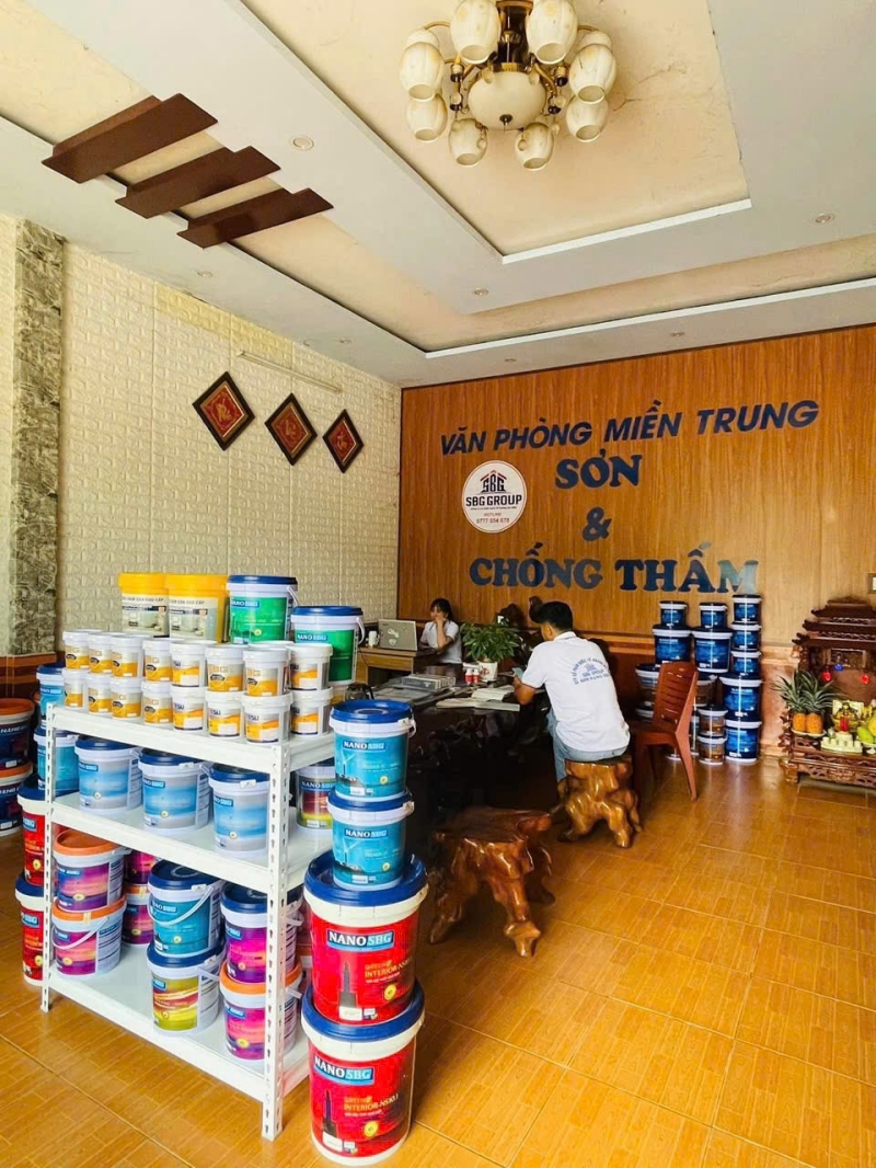 Các sản phẩm sơn NANOSBG tại văn phòng miền Trung của Công Ty Cổ Phần Quốc Tế Hoàng Gia SBG