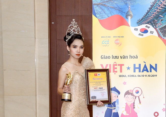 Trong chuỗi sự kiện tại Seoul Hàn Quốc vừa qua, Hoa hậu Huỳnh Trâm vinh dự khi được vinh danh tại Top 10 phụ nữ doanh nhân trong thời đại mới (top 10 New Women’s Leadership Award 2019)