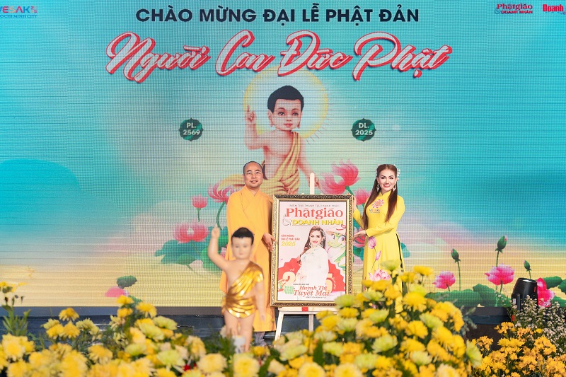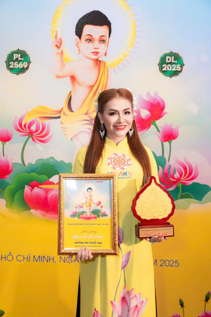 Chia sẻ về vinh dự khi tham gia tại sự kiện và nhận biểu tượng tại sự kiện ý nghĩa và sâu sắc doanh nhân Huỳnh Thị Tuyết Mai xúc động: “Tôi tham gia sự kiện Chào mừng Đại lễ Phật Đản lần này như một cách để bày tỏ lòng tri ân đến Đức Phật – bậc Thầy giác ngộ, người đã để lại kho tàng trí tuệ và từ bi cho nhân loại. Đây không chỉ là một nghi lễ tâm linh, mà còn là dịp để tôi lắng lại, nuôi dưỡng chất liệu an lành trong thân – tâm. Điều tôi mong đợi nhất, là được hòa mình trong không khí thanh tịnh, cùng đại chúng hướng tâm về ánh sáng của hiểu biết và yêu thương. Tôi tìm đến Phật giáo như một sự trở về tự nhiên với nội tâm của chính mình. Giữa những bộn bề, bon chen của cuộc sống, tôi cảm nhận rõ sự cần thiết của một nơi chốn bình an để lắng nghe, thấu hiểu và chữa lành chính mình. Phật giáo mang đến cho tôi không chỉ những giáo lý về từ bi, trí tuệ mà còn là con đường thực hành giúp tôi sống tỉnh thức hơn mỗi ngày”.