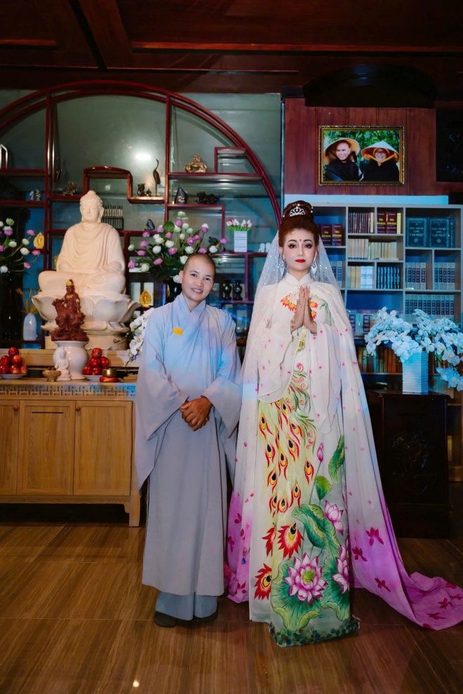 Là người có lòng giác ngộ cao lại yêu thích nét đẹp truyền thông và hoạt động thiện nguyện nên khi nhận được lời mời từ NTK Thiên Phước, Tuyết Mai đã không quản ngại vượt hàng trăm cây số từ Tri Tôn, An Giang về Thiền Viện Trúc Lâm Bảo Sơn biểu diễn thời trang và phát quà trong đại lễ Vu Lan báo hiếu.