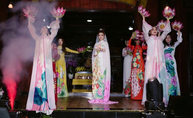 Sự kiện có sự hiện diện của NTK Thiên Phước người đã tạo nên những chiếc áo dài đẹp đậm chất truyền thống và nghệ thuật cho các chị em doanh nhân trình diễn, trong đó nổi bật là chiếc áo dài đặc biệt cũng là màn hoá thân đầy ấn tượng hình ảnh mẹQuan Âm do Nữ hoàng Tuyết Mai đảm nhận.
