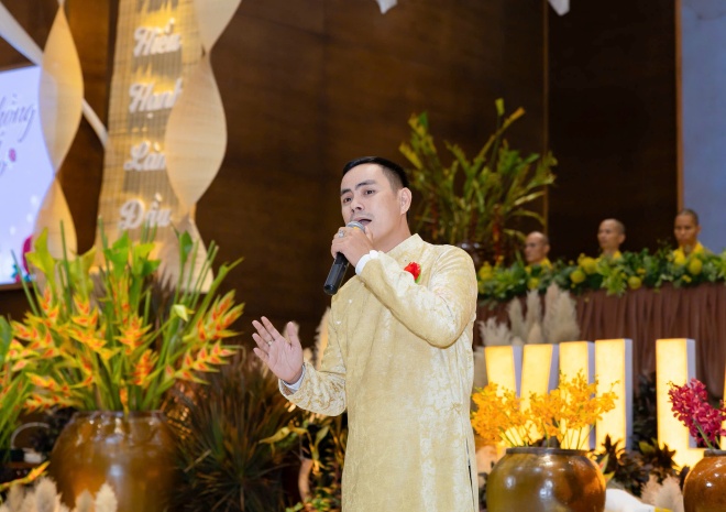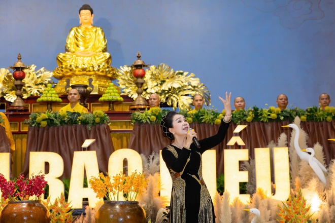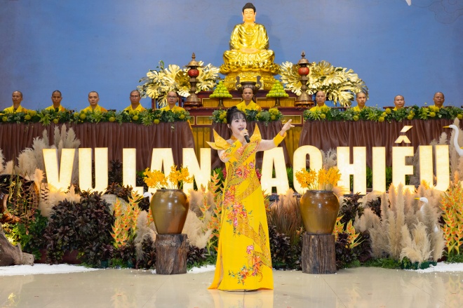 Tiếp nối chương trình, trong tà áo dài tinh khôi, Phật tử – Doanh nhân Ngô Thị Bích Toàn trình bày ca khúc “Ơn Nghĩa Sinh Thành”, lan tỏa trọn vẹn lòng hiếu kính. Chị cũng đại diện quý phật tử, khách mời nói lời chia sẻ…