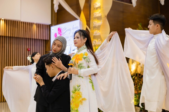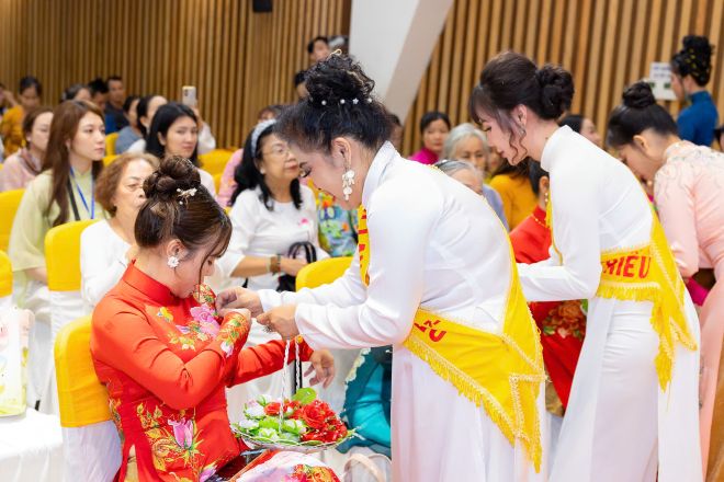Song song với âm nhạc, chương trình còn giới thiệu bộ sưu tập áo dài “Hoa Hồng” của NTK Tuấn Hải, tôn vinh nét đẹp truyền thống và tinh thần hiếu hạnh.