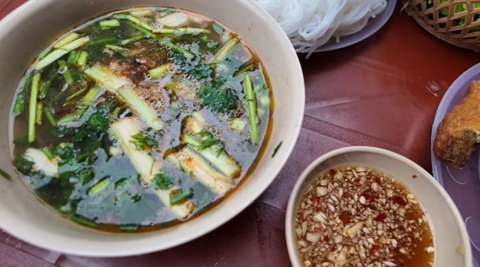 Ngoài ra, thực khách thưởng thức bún cá chấm còn được phục vụ kèm 1 bát nước dùng đậm đà, có vị chua dịu và rau xanh nên không có cảm giác bị ngấy.