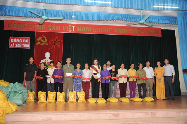 Tiếp theo lịch trình Á hậu Thúy Nhân đã có buổi gặp gỡ thân mật và trao 146 phần quà đặc biệt cho người dân nghèo xã Sơn Tình. Tại đây biết bao tình cảm ngọt ngào và những giọt nước mắt hạnh phúc đã tuôn rơi. Bà con quê hương ôm và vỗ về cô gái ngày nào còn vất vả chăn trâu, cắt cỏ, lên đồi hái củi cắt tế đi cấy đi gặt suốt mùa giờ đã trở thành một Á hậu Thúy Nhân xinh đẹp, giỏi giang và giầu lòng nhân ái. Họ cảm ơn thứ tình cảm quý giá mà cô Á hậu dành cho người dân nghèo quê hương. Phát biểu của đồng chí chủ tịch UBND xã Sơn Tình tại chương trình “Sơn Tình thật vinh hạnh và tự hào khi có 1 hoa hậu, á hậu xinh đẹp và luôn có tâm đức độ như vậy”.