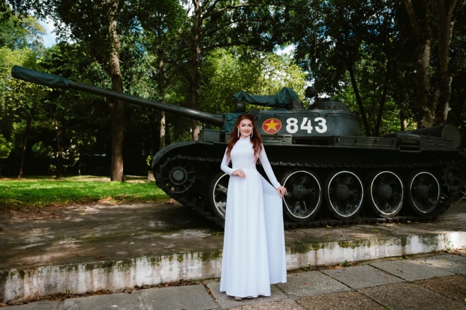 “Trong sự kiện trọng đại lần này, vì một số lý do nên tôi không thể ra Hà Nội dự Concent Quốc Gia, nhưng tinh thần hướng tới ngày lễ vẫn luôn rực cháy trong tôi, thôi thúc tôi, nên tôi đã sắp xếp thời gian để có mặt tại Dinh Độc Lập, công trình kiến trúc đặc sắc, di tích lịch sử đặc biệt – nơi lưu giữ dấu ấn về ngày chiến thắng, kết thúc Chiến dịch Hồ Chí Minh lịch sử, giải phóng miền nam, thống nhất đất nước, thực hiện bộ ảnh áo dài kịp lễ chào mừng 2/9”, Tuyết Mai chia sẻ thêm.