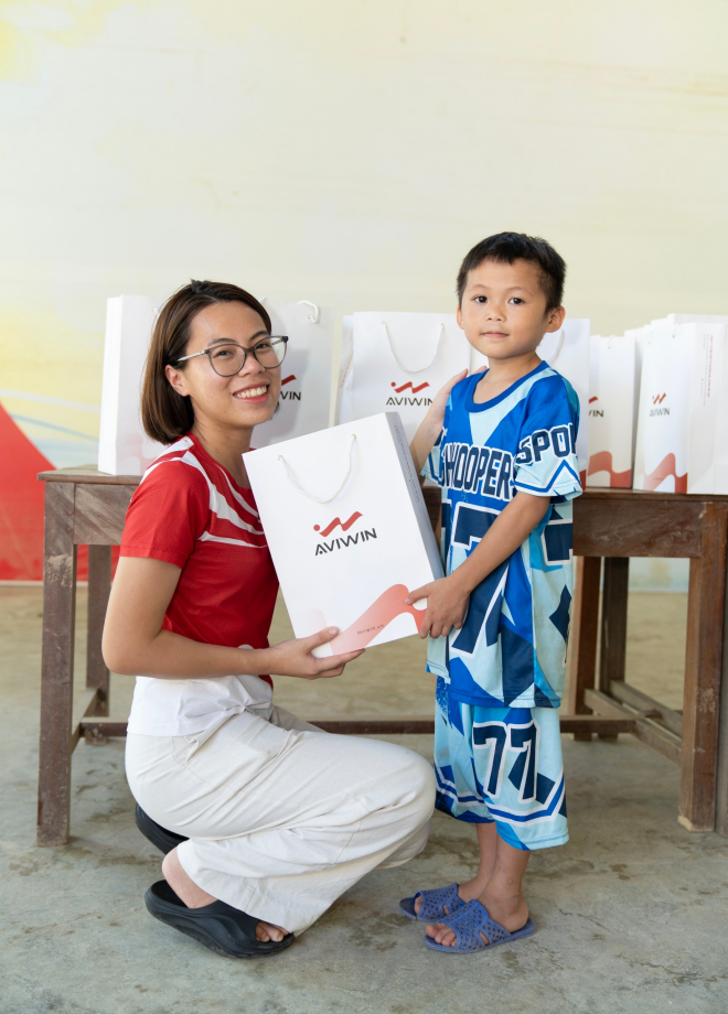 Xuất phát từ sự đồng cảm ấy, Công ty Aviwin Việt Nam đã tham gia cùng Quỹ Tấm lòng vàng SUNSHINE, Công ty Artemis và Nhóm thiện nguyện “Việt Nam trong tôi” tại Nghệ An chương trình trao tặng giày mới cho các em học sinh vùng lũ, với mong muốn mỗi bước chân đến lớp sẽ vững vàng hơn, mỗi ước mơ sẽ thêm rộng mở.