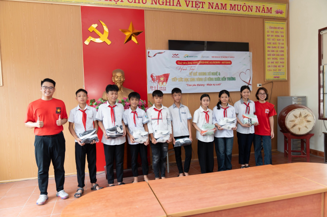 VHDNVN – Nhân dịp kỷ niệm 80 năm Cách mạng Tháng Tám và Quốc khánh 2/9 và chào đón năm học mới, Công ty Aviwin Việt Nam đã đồng hành cùng chương trình thiện nguyện “Về quê hương xứ Nghệ & Tiếp sức học sinh vùng lũ vững bước đến trường”, trao tặng 150 đôi giày mới cho học sinh tại vùng lũ Nghệ An. Hoạt động mang ý nghĩa thiết thực này không chỉ tiếp thêm động lực cho các em nhỏ đến lớp, mà còn gieo mầm niềm tin, nghị lực và khát vọng vươn lên trong học tập.