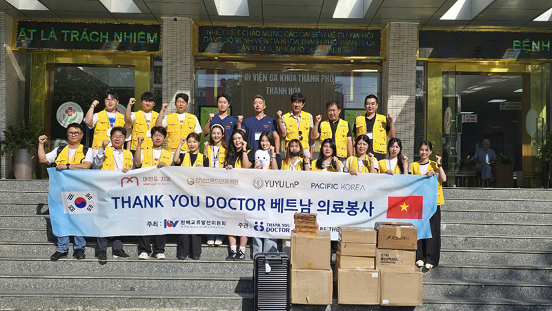 Từ ngày 25 đến 26 tháng 10, Đoàn tình nguyện y tế ‘Thank You Doctor’ của Hội đồng Phát triển Giao lưu Hàn – Việt đã thực hiện thành công các hoạt động tình nguyện y tế tại Bệnh viện Đa khoa Thanh Hóa, Việt Nam. Chương trình có sự tham gia của các bác sĩ hàng đầu Hàn Quốc, cung cấp dịch vụ y tế chất lượng cao trong linh vực nhãn khoa và nha khoa cho người dân Việt Nam.