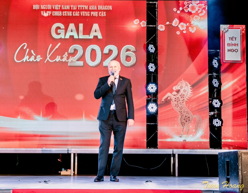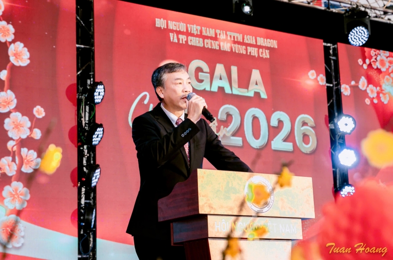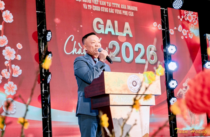Phát biểu khai mạc chương trình, ông Đỗ Công Thắng – Chủ tịch Hội Người Việt Nam tại TTTM Asia Dragon, TP Cheb và các vùng lân cận xúc động chia sẻ: Gala Chào Xuân 2026 không chỉ là dịp vui Xuân, thưởng thức văn hóa, ẩm thực truyền thống, mà còn là đêm sum họp của tình quê, của nghĩa đồng bào, là sợi dây gắn kết tinh thần của cộng đồng người Việt nơi xa xứ. Ông trân trọng cảm ơn Đại sứ quán Việt Nam, Liên hiệp Hội Người Việt Nam tại CH Séc, các hội đoàn, câu lạc bộ, chính quyền TP Cheb và khu vực Karlovy Vary, cùng toàn thể bà con đã đồng hành, chung tay tạo nên một đêm hội đầy ý nghĩa.