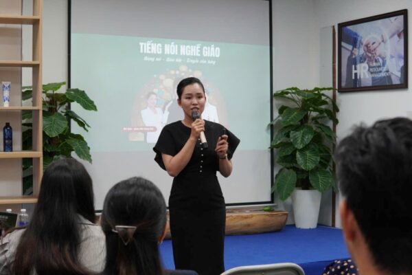 Theo bà, kỹ năng này vốn đã trở thành tiêu chuẩn trong đào tạo nhân sự doanh nghiệp, nhưng lại là mảnh ghép còn thiếu trong đào tạo sư phạm – dù người thầy là nhóm sử dụng giọng nói cường độ cao nhất.